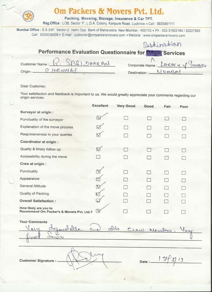 I have taken a service from Om Packers & Movers Pvt. Ltd. for my relocation from Chennai to Mumbai.I would really like to mentioned this that they are really efficient and professional.It was really very quick, I do recommend this agency to be hired for any relocation is required.