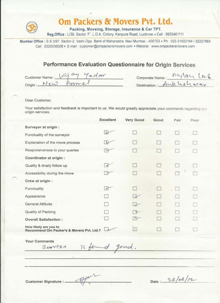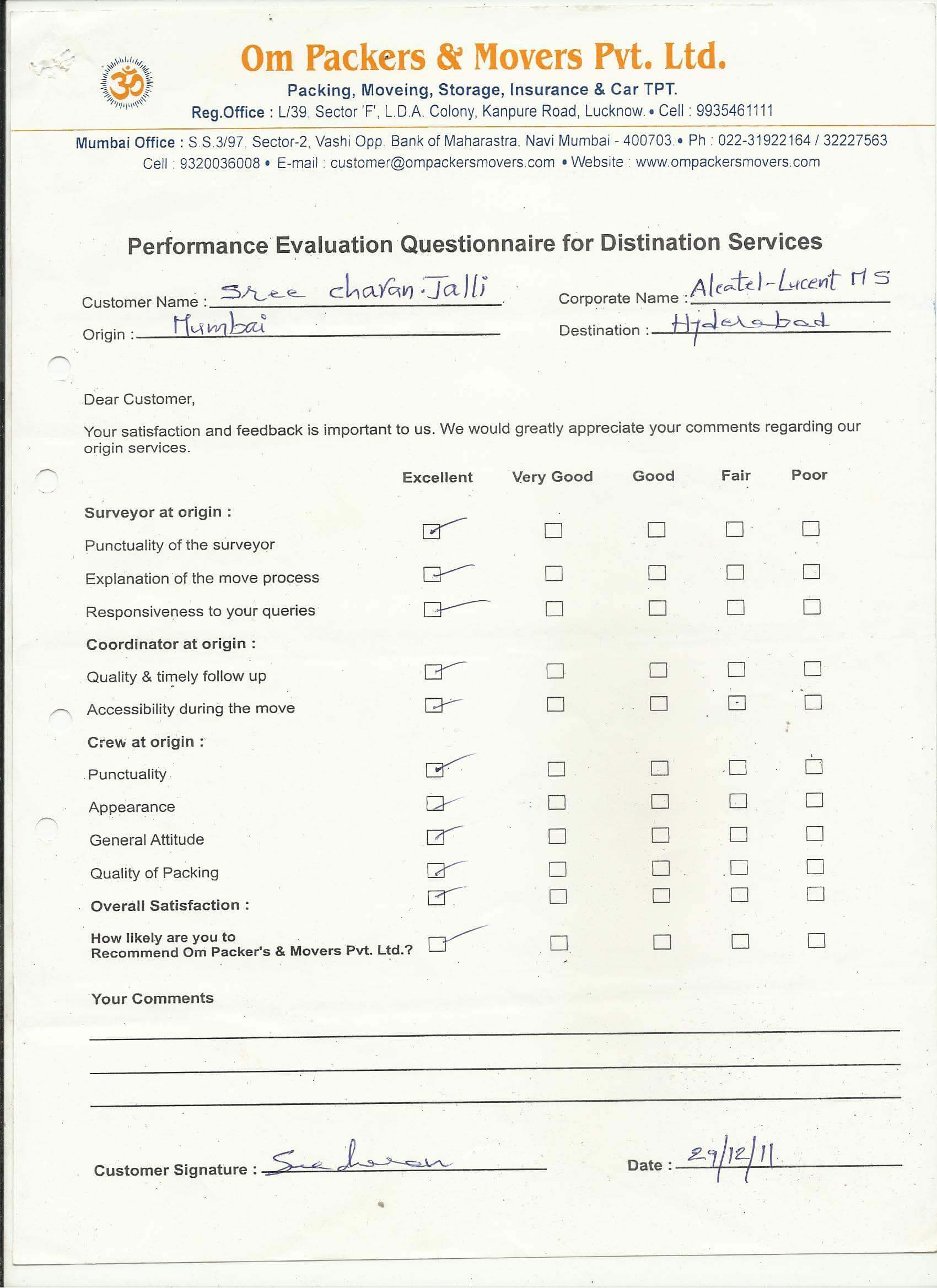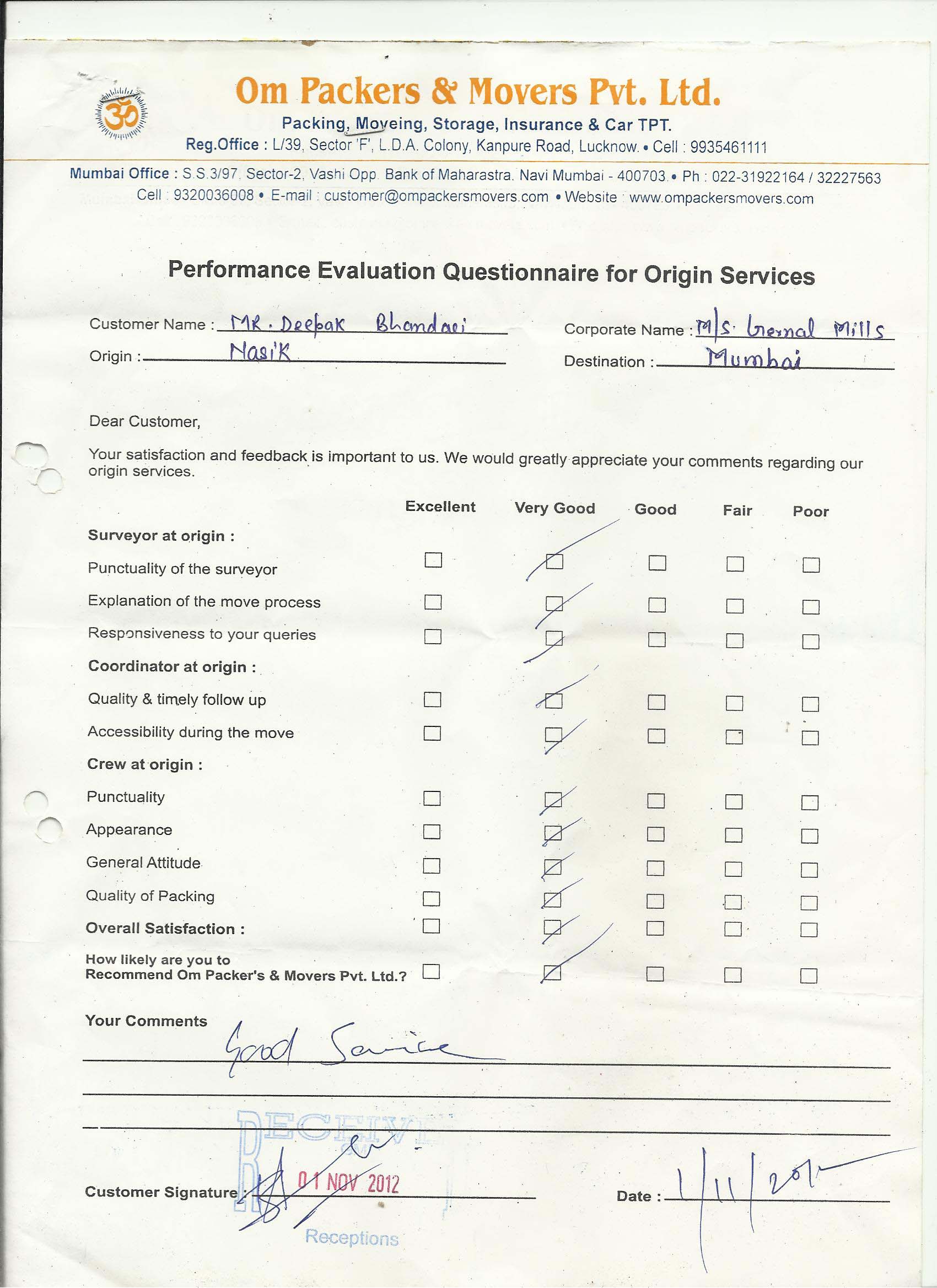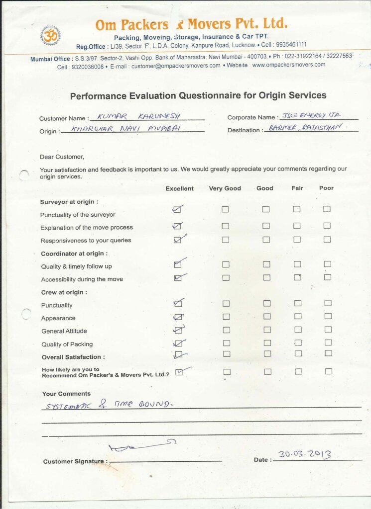 Om Packers & Movers Pvt. Ltd. was smooth and quick.The quote they gave me was accurate and they were good honest on time. Nothing broke in transit what else could I ask for.
