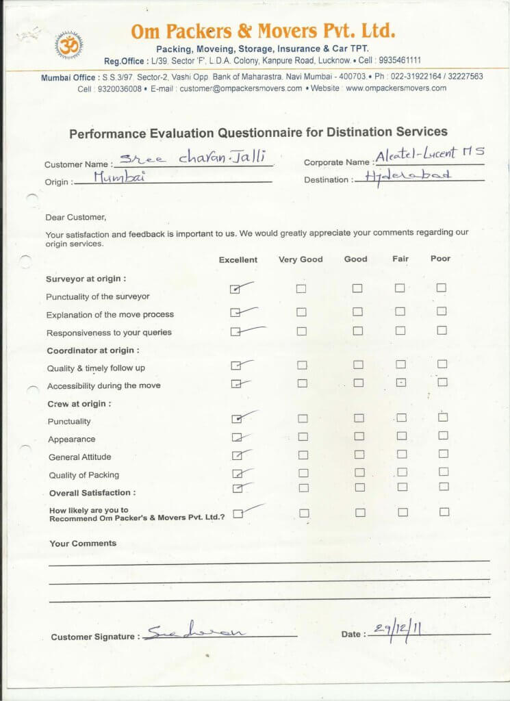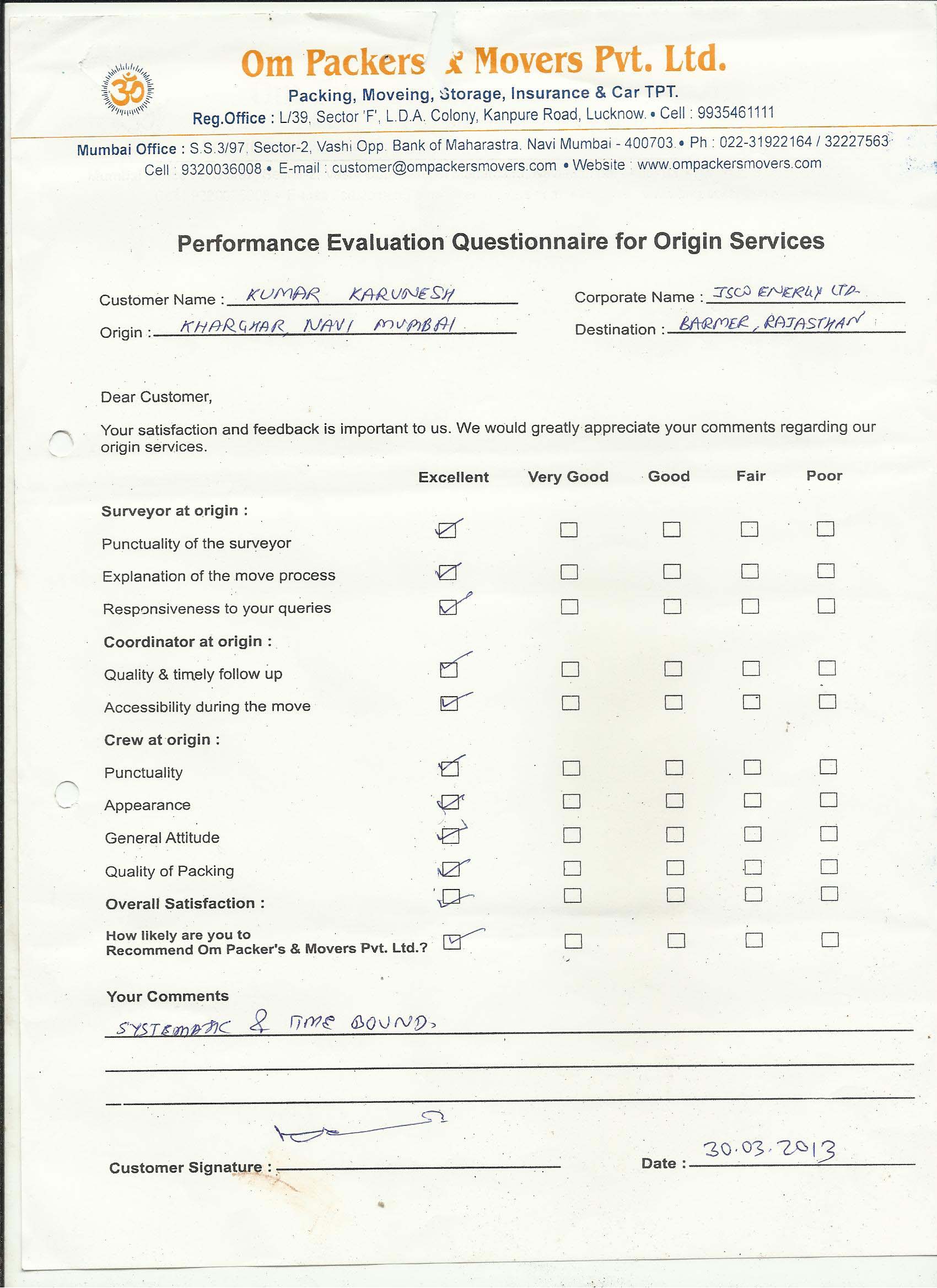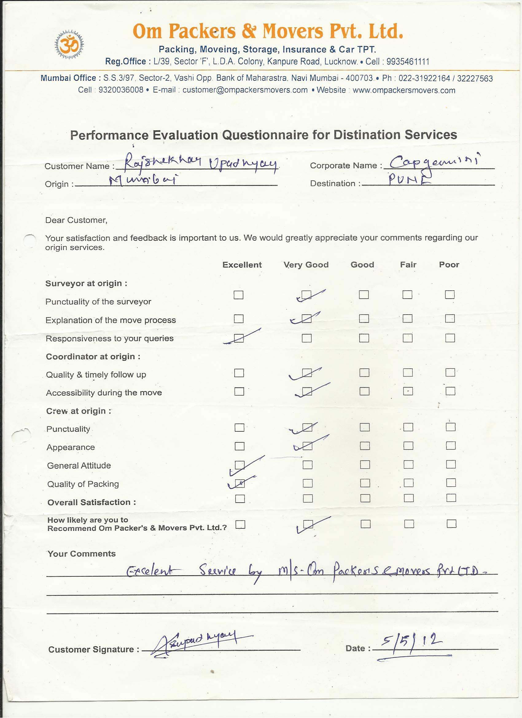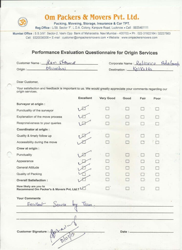 Om Packers & Movers Pvt. Ltd. was smooth and quick.The quote they gave me was accurate and they were good honest on time. Nothing broke in transit what else could I ask for.