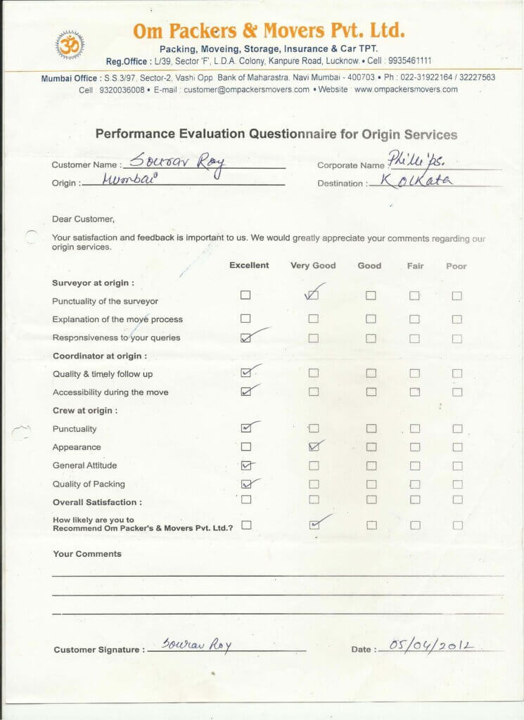 Service was awesome. I was relocating from Mumbai to Kolkata and starting from inquiry, loading & unloading they were not a single concern. they have all Equipped tools and the team were also knowledgeable caring. With out munch intervention they finished the task within short time. I appreciate the whole team.
